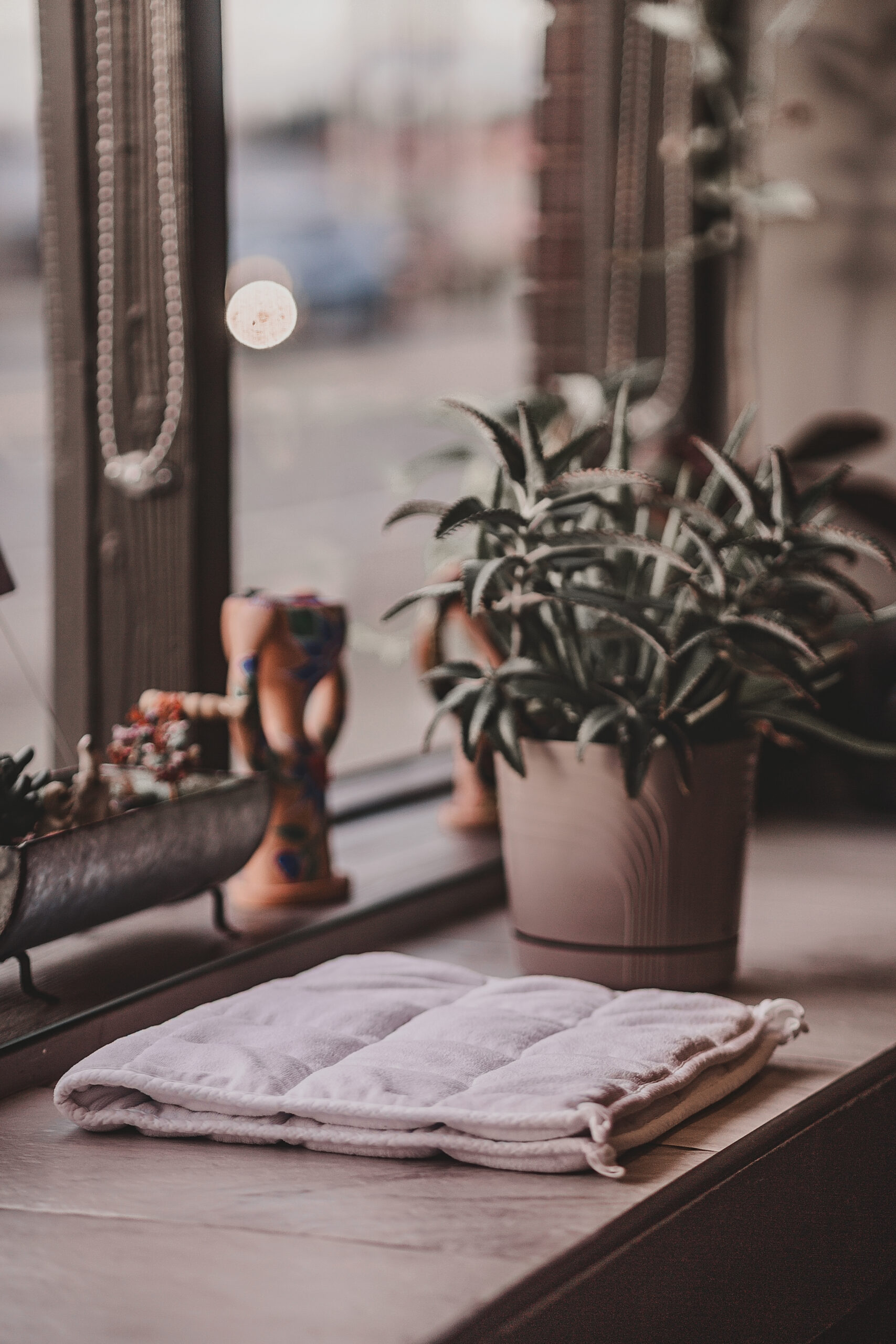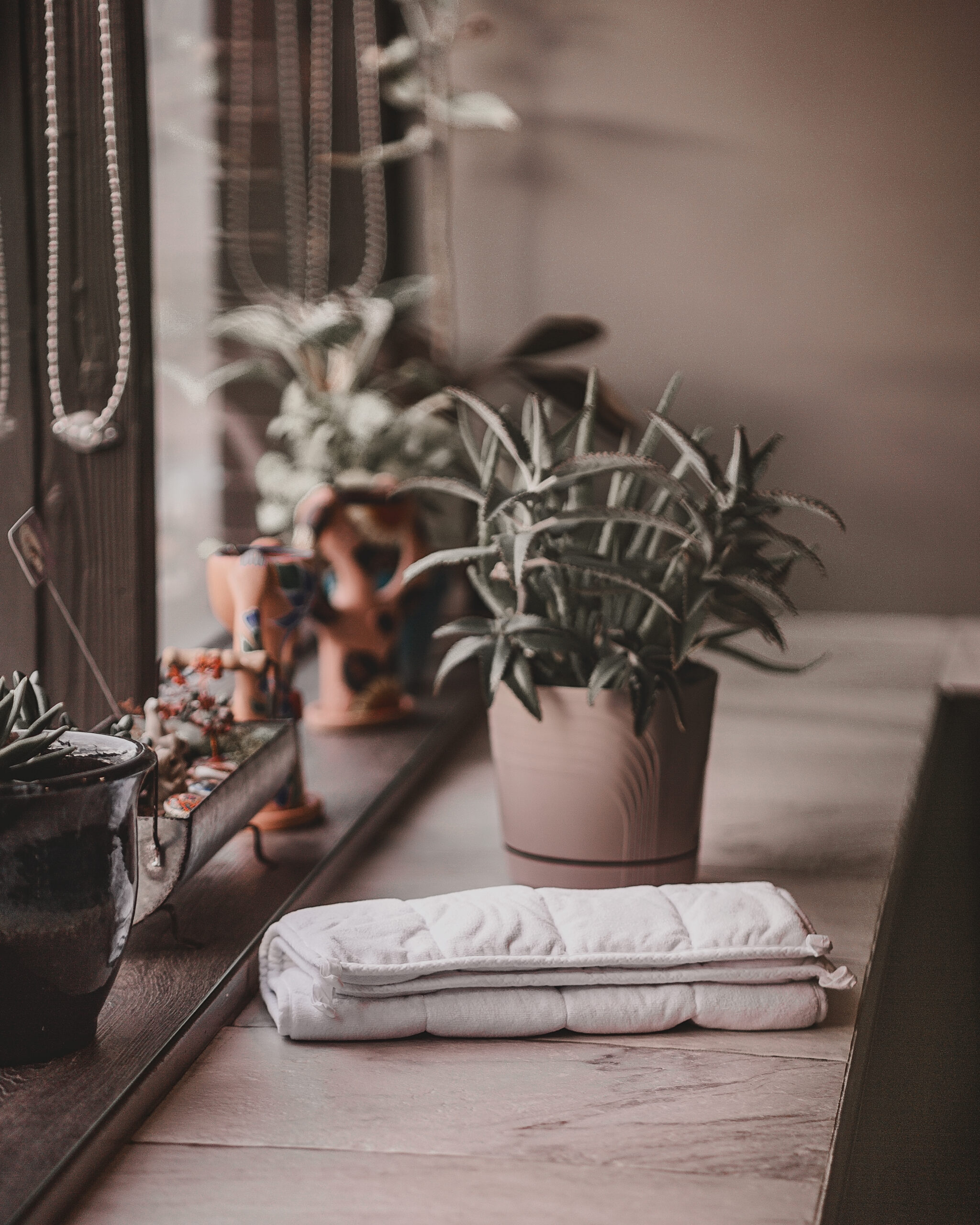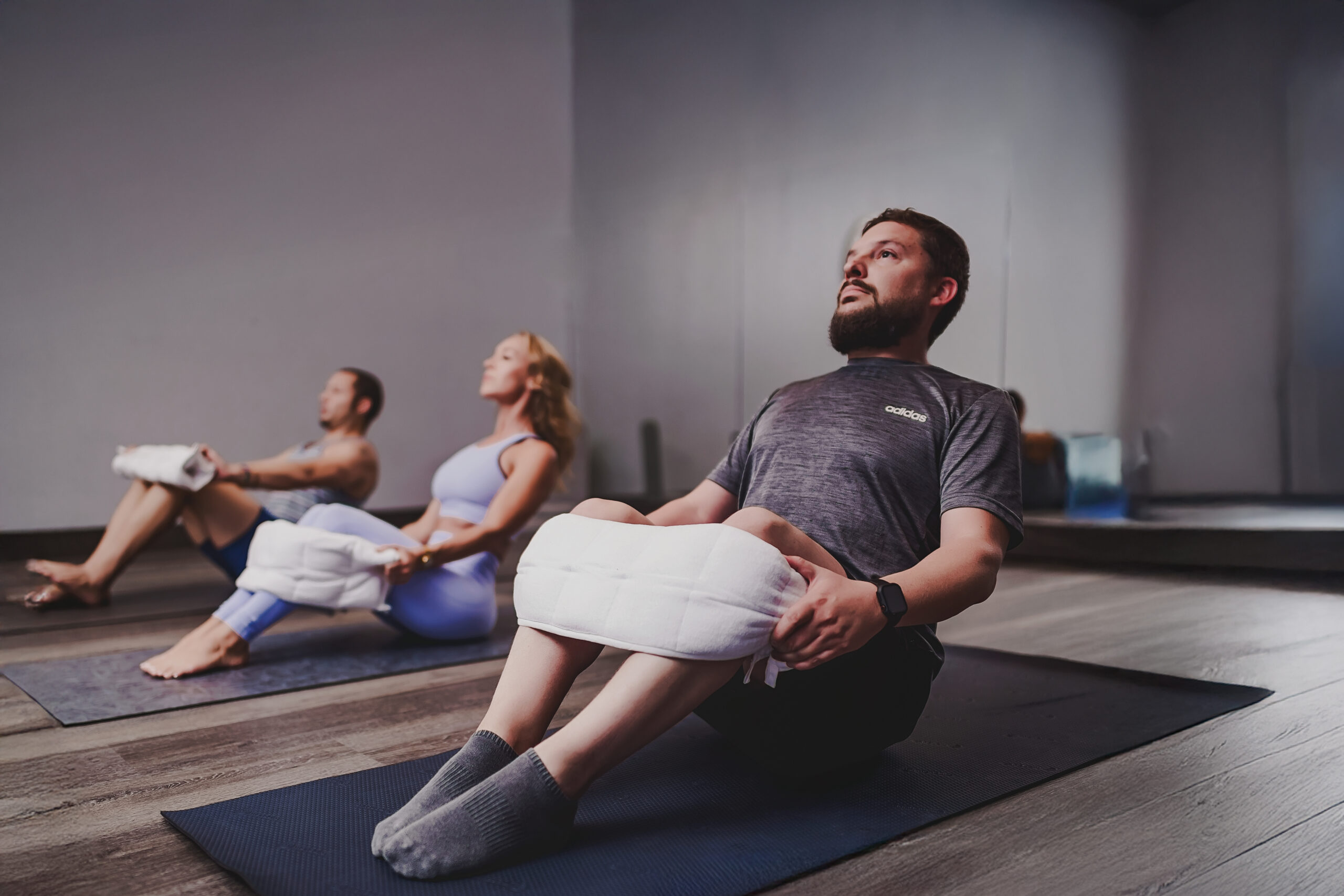 Place across your thighs for grounding during seated poses.